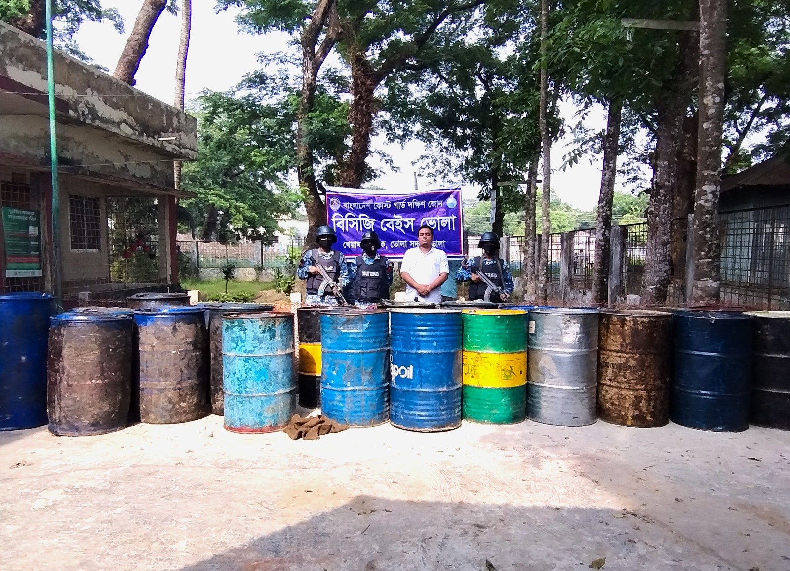 তিনি বলেন, ভোলার দৌলতখান থানাধীন বিউটি রোড সংলগ্ন বেড়িবাঁধ এলাকায় গত ২৩ এপ্রিল ২০২৬ তারিখ বৃহস্পতিবার রাত ১০টায় কোস্ট গার্ড বেইস ভোলা কর্তৃক গোপন সংবাদের ভিত্তিতে একটি বিশেষ অভিযান পরিচালনা করা হয়। অভিযান চলাকালে উক্ত এলাকায় ৬ টি দোকান তল্লাশি করে অবৈধভাবে মজুদকৃত প্রায় ৫ লক্ষ ৪০ হাজার ৭৫০ টাকা মূল্যের ২ হাজার ৮৫০ লিটার অবৈধ জ্বালানি তেল (ডিজেল, পেট্রোল ও অকটেন) ও ৯০০ লিটার ভেজাল ভোজ্য তেল জব্দ করা হয়।
