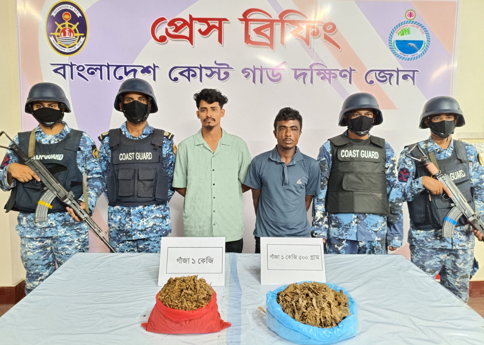 ভোলায় ২ কেজি ৫০০ গ্রাম গাঁজাসহ”২ মাদক কারবারিকে আটক করেছে কোস্ট গার্ড