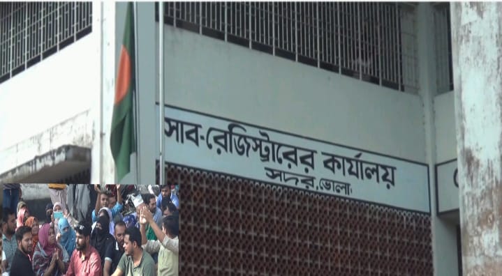 ভোলায় জেলা রেজিস্ট্রারের বদলির দাবিতে নকলনবিশরা বিক্ষোভ প্রদর্শন