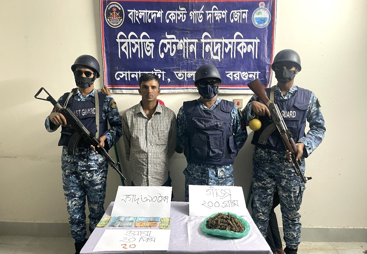 অপরদিকে, গত ১১ নভেম্বর ২০২৫ তারিখ মঙ্গলবার রাত ১০ টায় কোস্ট গার্ড স্টেশন নিদ্রাসকিনা কর্তৃক বরগুনার তালতলী থানাধীন অফিস ঘাট সংলগ্ন এলাকায় একটি বিশেষ অভিযান পরিচালনা করা হয়। অভিযান চলাকালীন উক্ত এলাকায় সন্দেহভাজন এক ব্যক্তিকে তল্লাশি করে প্রায় ১০ হাজার টাকা মূল্যের ২০ পিস ইয়াবা, ৬ হাজার টাকা মূল্যের ২০০ গ্রাম গাঁজা ও নগদ ৩৯০ টাকাসহ আটক করা হয়।